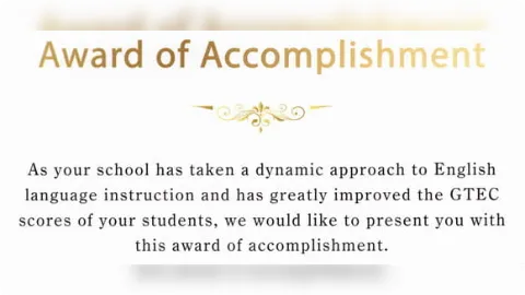 英語4技能試験GTECにおいて奨励賞を受賞しました